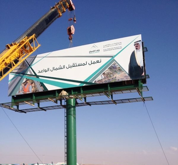 احترافية التنفيذ: نحن نتولى جميع مراحل العمل، بدءاً من الحصول على التراخيص اللازمة وحتى بناء الهيكل المعدني الضخم وتركيب اللوحة بأمان تام.